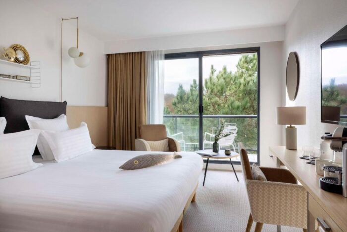 L’atmosphère feutrée invite immédiatement à décrocher, parfaite pour un week-end en amoureux ou une pause loin du rythme quotidien. Mais l’établissement est aussi réputé pour sa thalasso : spa marin, piscines d’eau de mer chauffée, sauna, hammam et parcours Aquatonic®.